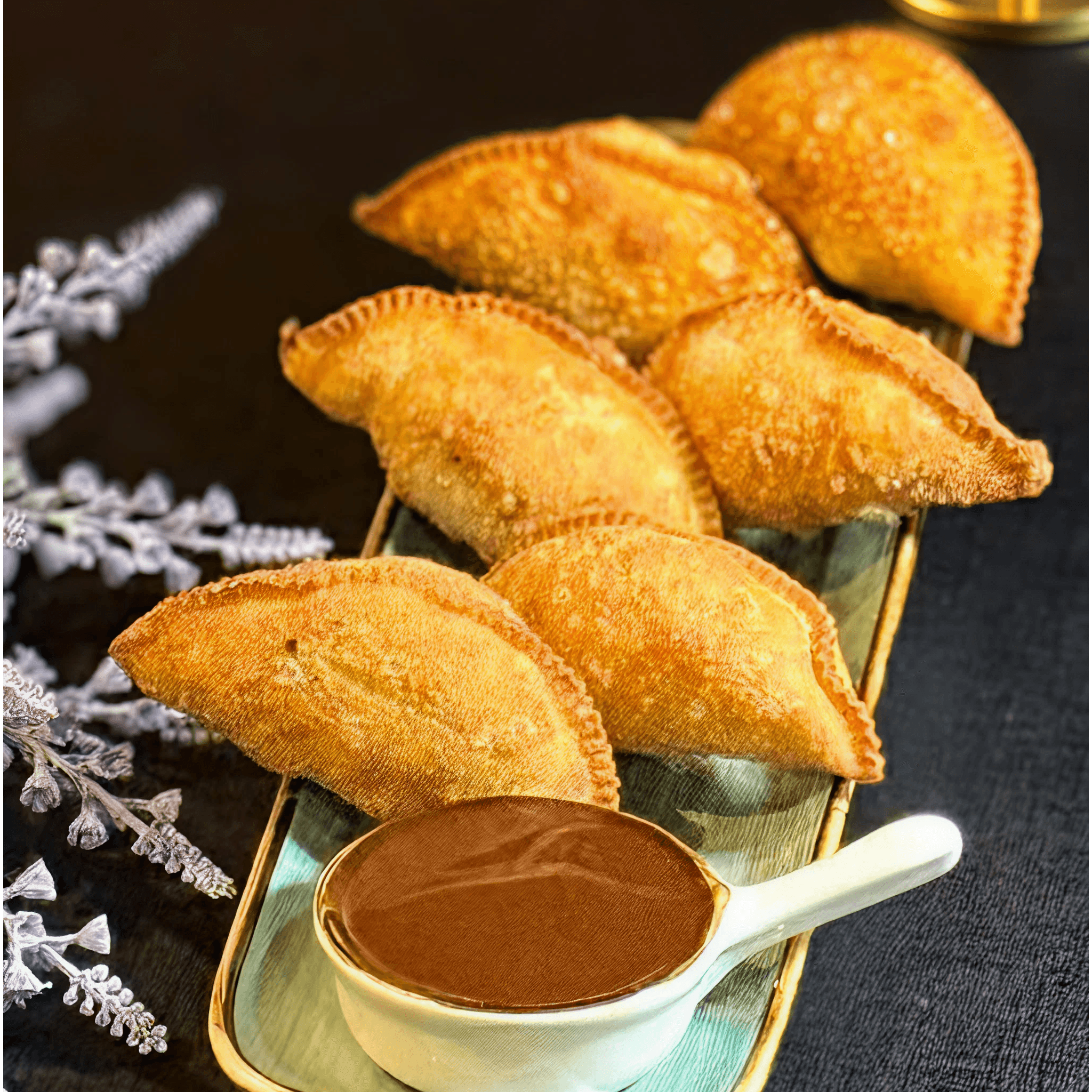Massa crocante recheada com suculenta pernil de porco. acompanha molho barbecue de goiabada ( 6 unidades ).